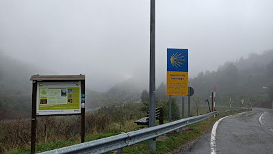 Dalt del port de Somport "Summus Portus" el dia se'ns presenta emboirat i plujós. Una pluja fina i constant ens acompanyarà una bona part de l'etapa.
